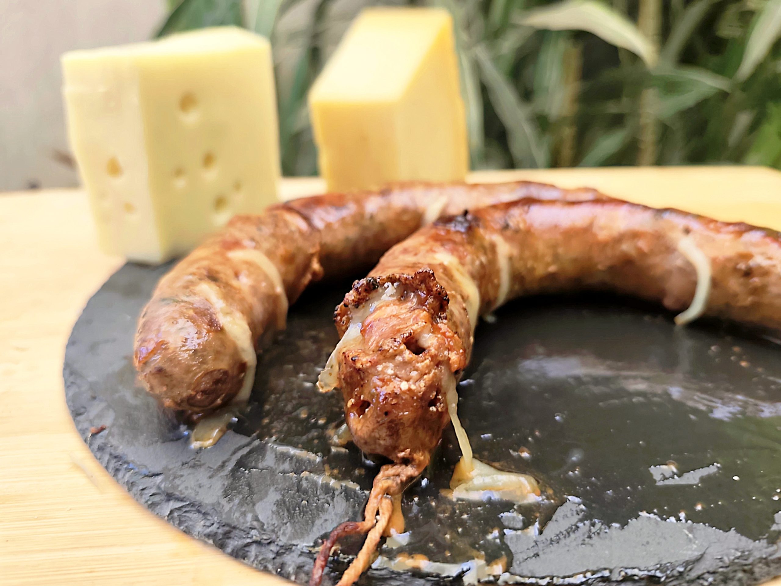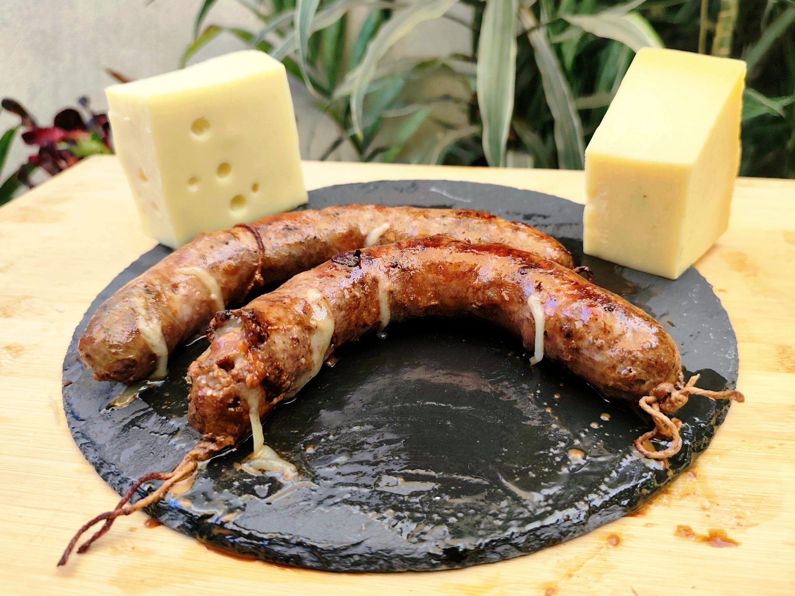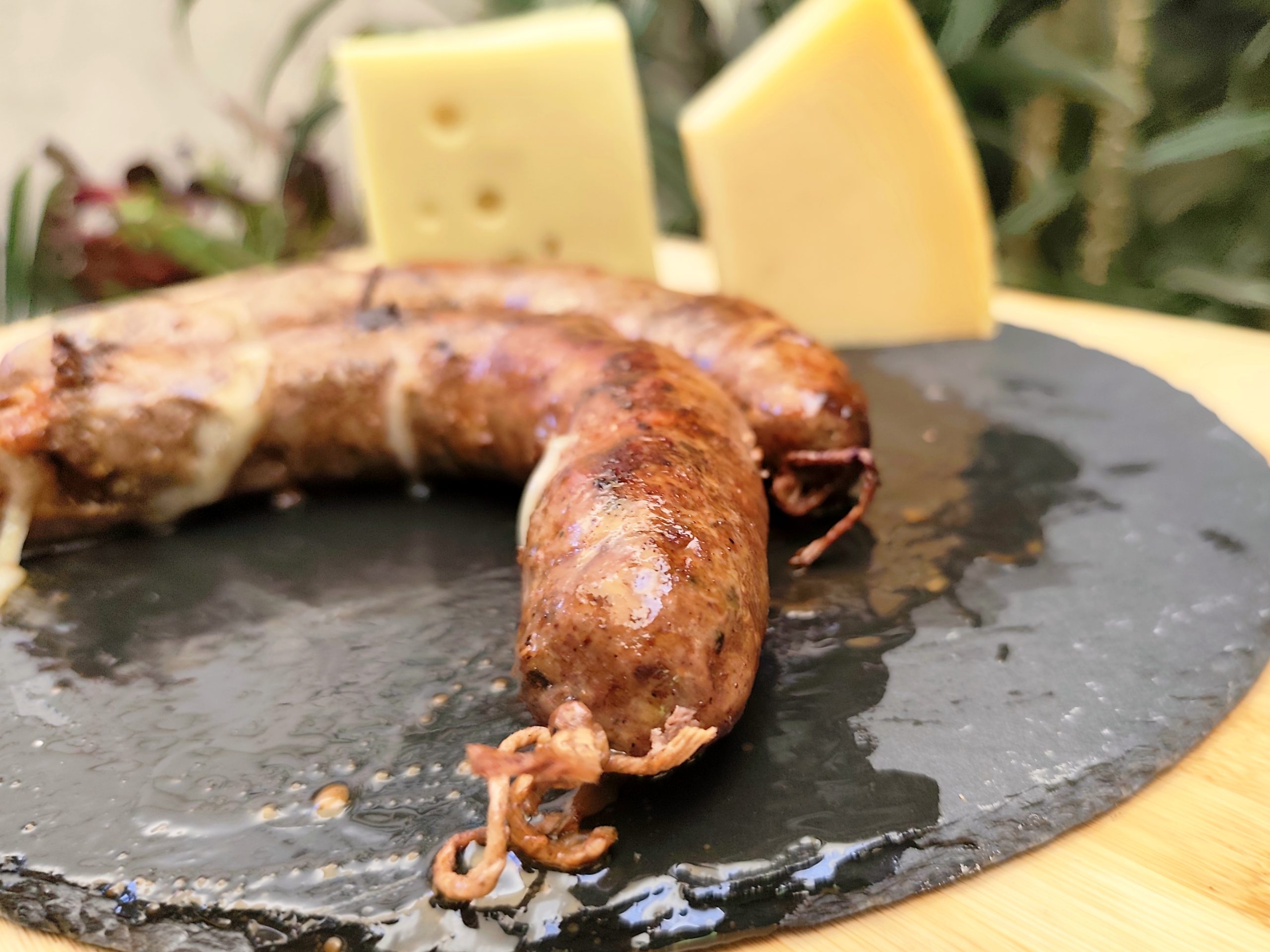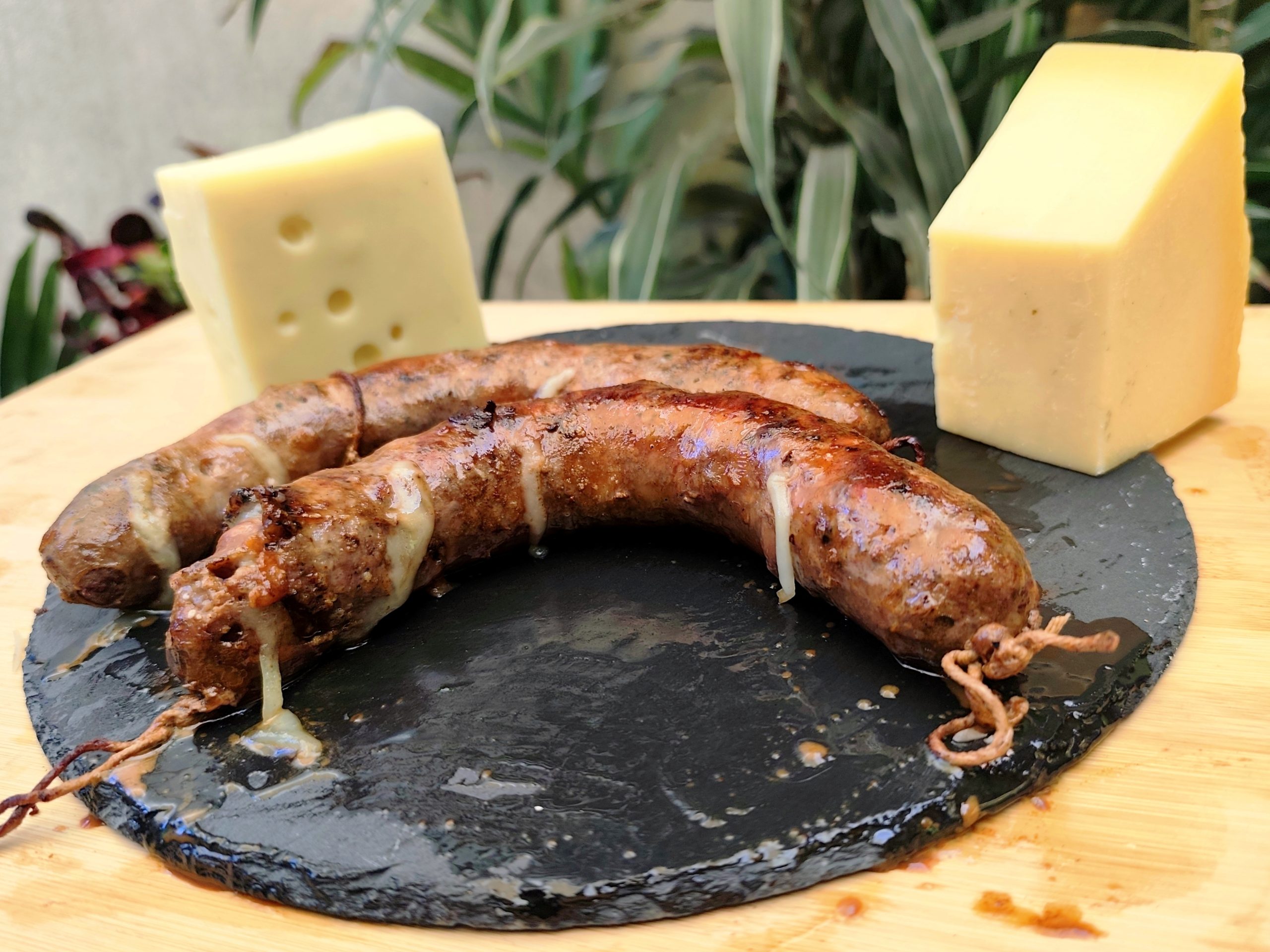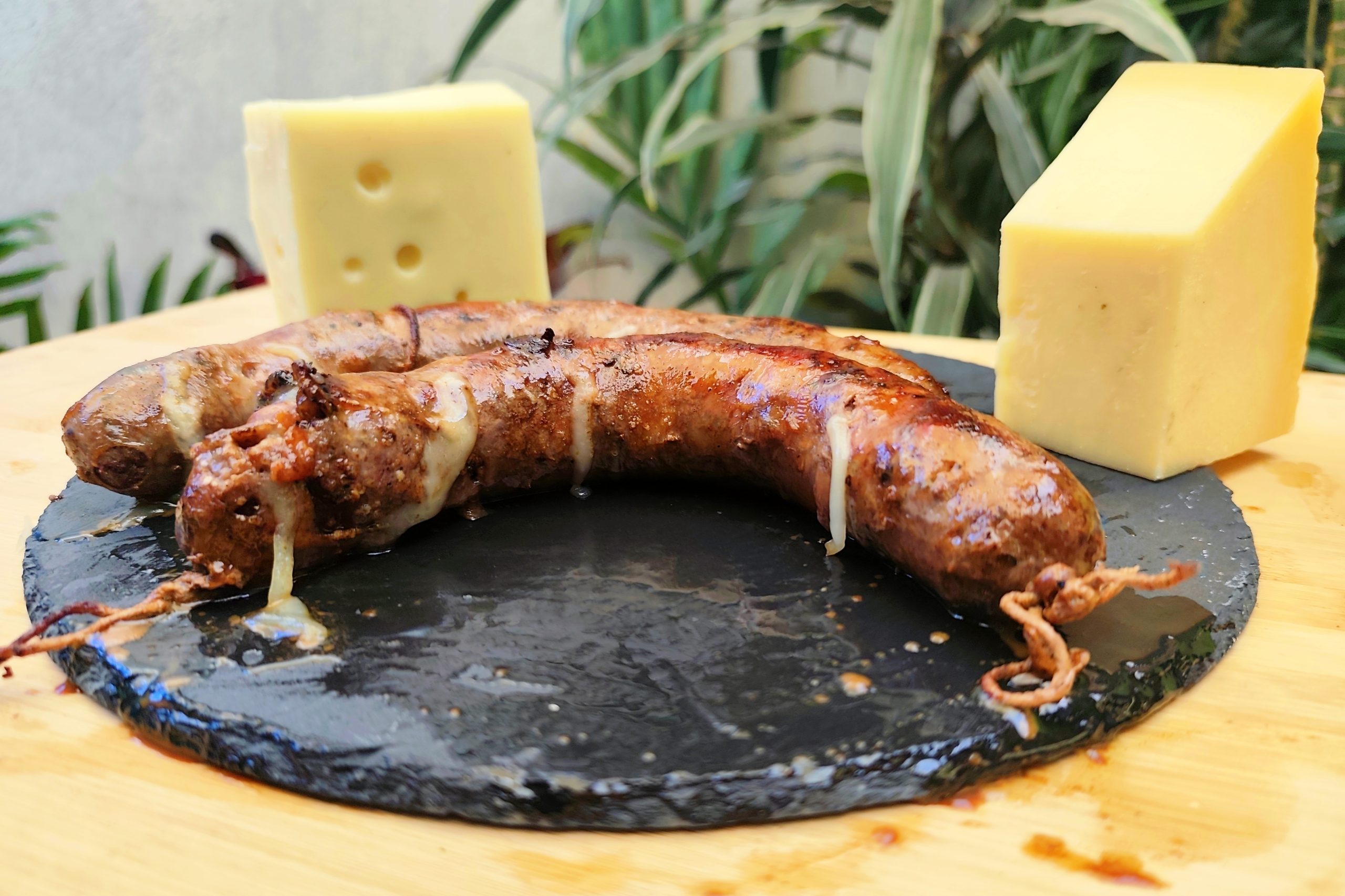 El chorizo Suizo, Parmesano al vino tinto de viuda de res, se caracteriza por su innovación en la composición y su fina mezcla de Vino tinto, queso suizo y parmesano con finas especias da una constitución única que otorga sabores explosivos al paladar. Al seleccionar, los cortes de Viuda más marmoleados y suaves destacan su sabor ya que constituye el 80% de la mezcla. Este corte aporta una textura y sabor único y al combinar con parmesano y suizo se crea una sensación nueva e increíble, siendo la base fundamental de la receta, con notas acarameladas y fermentadas del vino que desatan en un preludio de aromas.